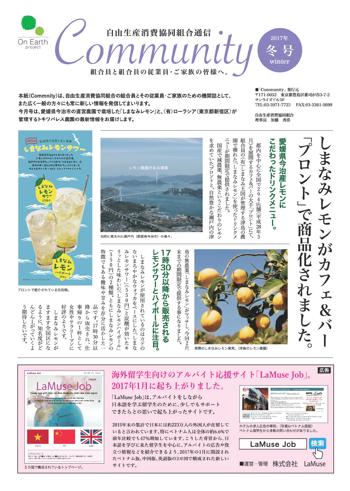 本誌(Community)は、自由生産消費協同組合の組合員と、その従業員・ご家族の機関誌として、また幅広く一般の方々にも常に新しい情報を発信してまいります。